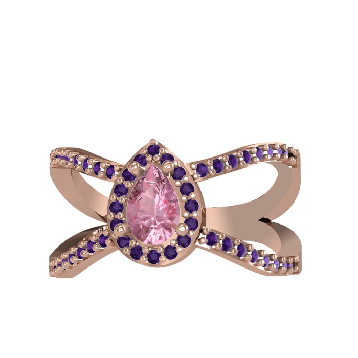 Pembe kuvars ve ametist 14 ayar rose altın yüzük