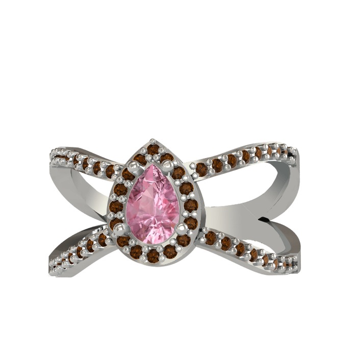 Pembe kuvars ve dumanlı kuvars 14 ayar beyaz altın yüzük