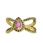 Pembe kuvars ve peridot 925 ayar altın kaplama gümüş yüzük