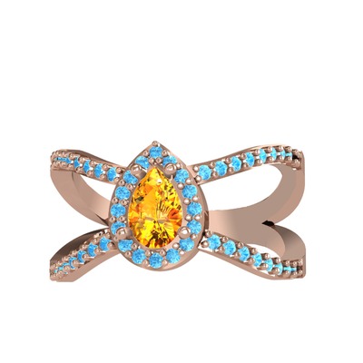 Sitrin ve akuamarin 925 ayar rose altın kaplama gümüş yüzük