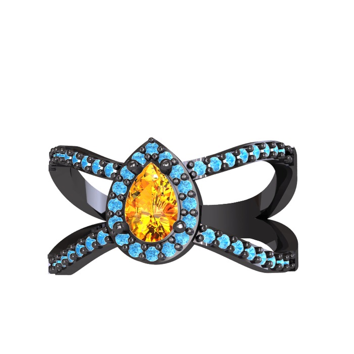 Sitrin ve akuamarin 925 ayar siyah rodyum kaplama gümüş yüzük
