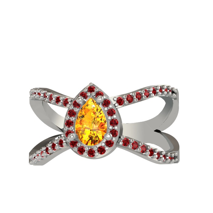 Sitrin ve garnet 18 ayar beyaz altın yüzük