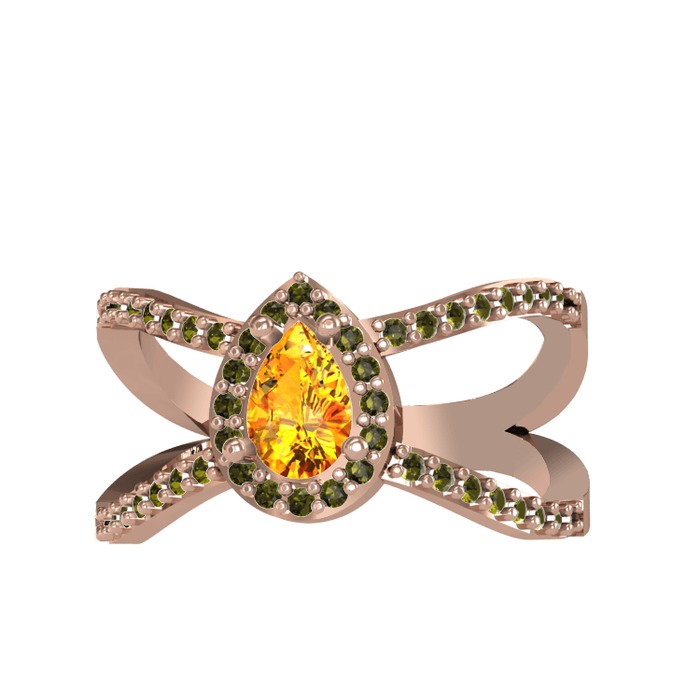 Sitrin ve peridot 925 ayar rose altın kaplama gümüş yüzük
