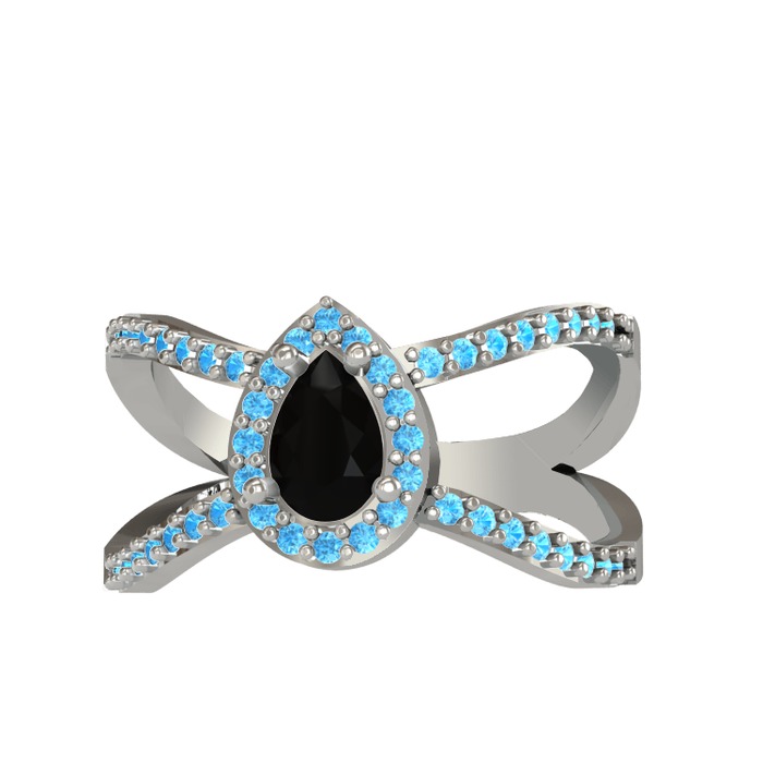 Siyah zirkon ve akuamarin 14 ayar beyaz altın yüzük