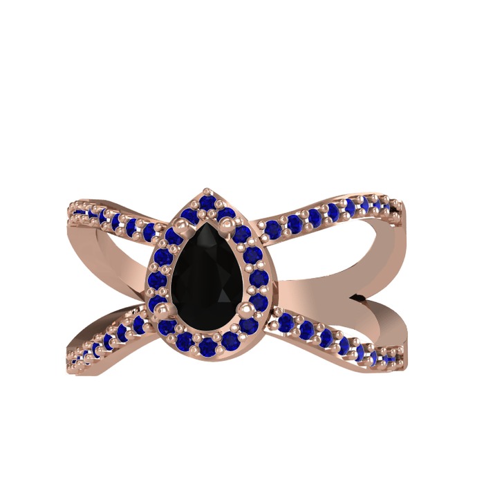 Siyah zirkon ve lab safir 925 ayar rose altın kaplama gümüş yüzük