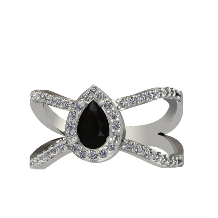 Siyah zirkon ve pırlanta 8 ayar beyaz altın yüzük (0.4224 karat)