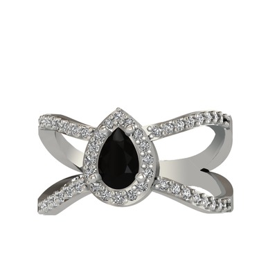 Siyah zirkon ve swarovski 8 ayar beyaz altın yüzük