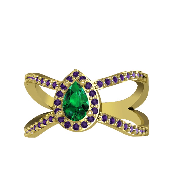 Yeşil kuvars ve ametist 14 ayar altın yüzük