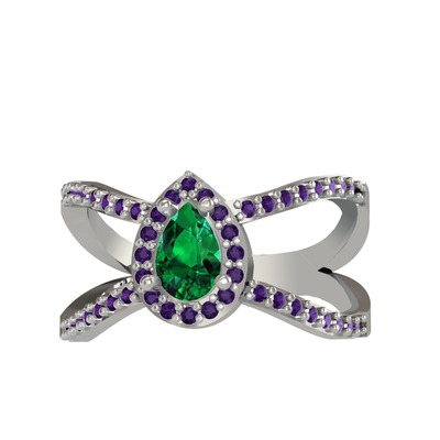 Yeşil kuvars ve ametist 925 ayar gümüş yüzük