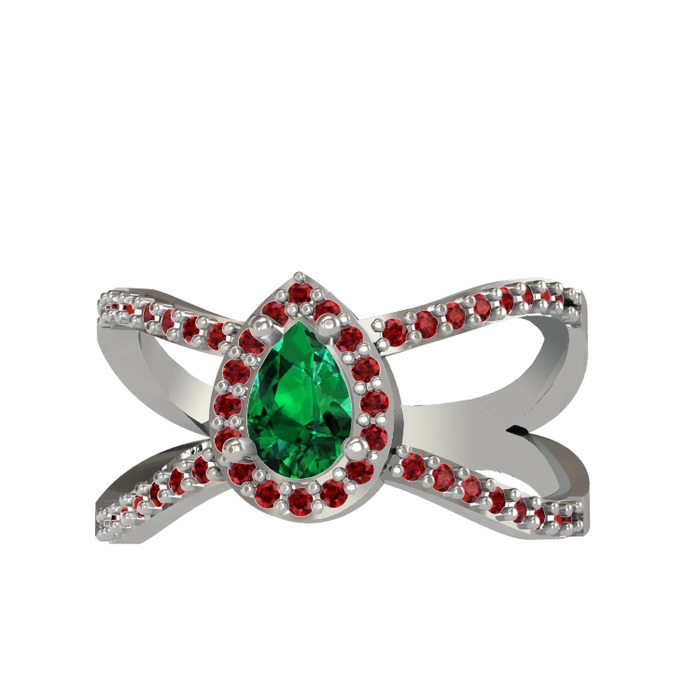 Yeşil kuvars ve garnet 14 ayar beyaz altın yüzük