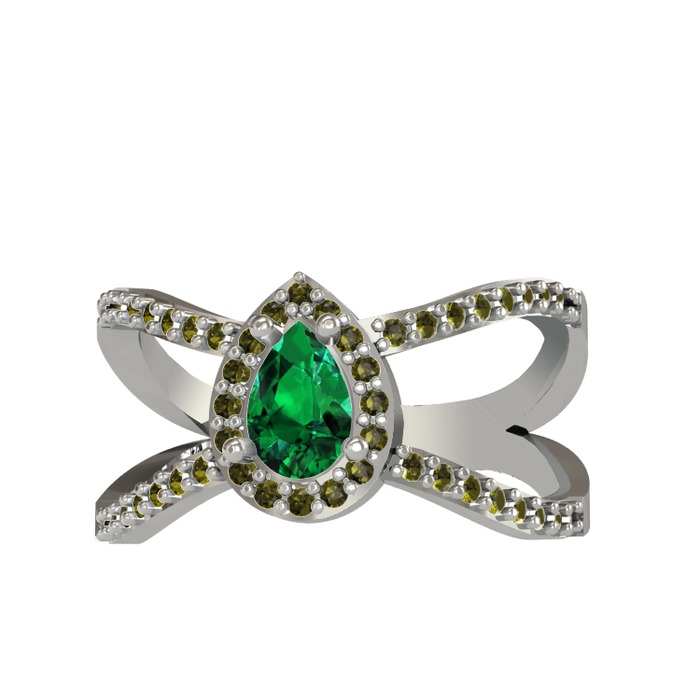 Yeşil kuvars ve peridot 14 ayar beyaz altın yüzük