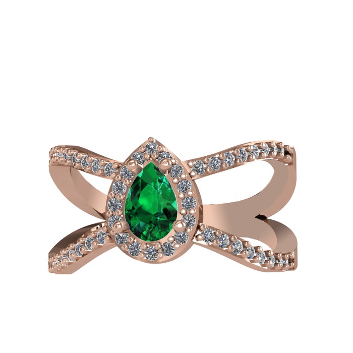 Yeşil kuvars ve pırlanta 8 ayar rose altın yüzük (0.4224 karat)
