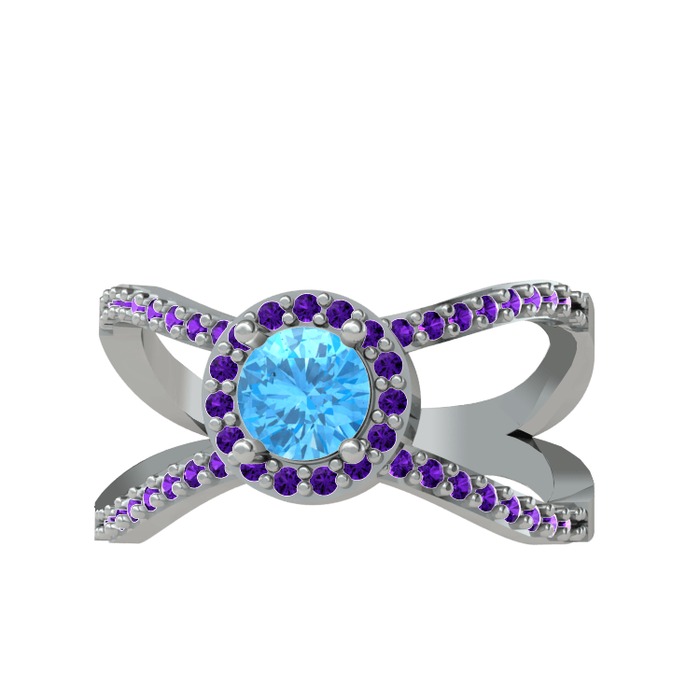 Akuamarin ve ametist 18 ayar beyaz altın yüzük