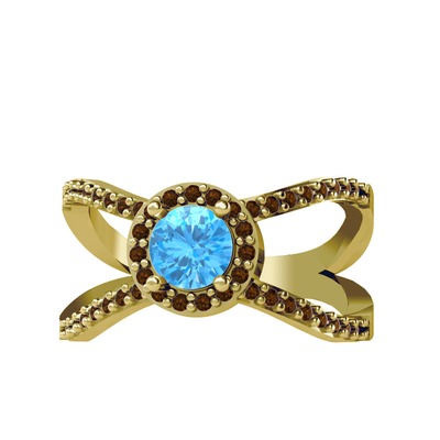 Akuamarin ve dumanlı kuvars 18 ayar altın yüzük