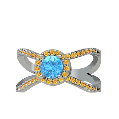 Akuamarin ve sitrin 14 ayar beyaz altın yüzük