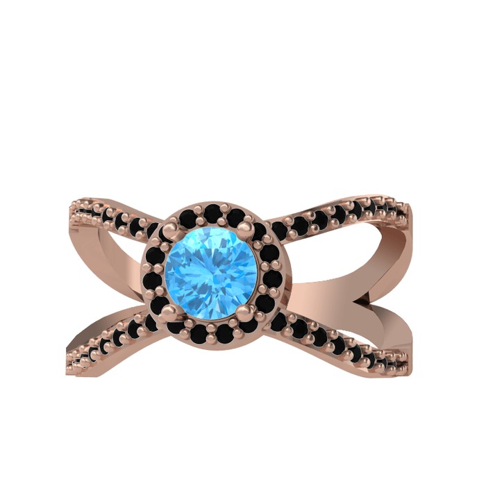 Akuamarin ve siyah zirkon 18 ayar rose altın yüzük
