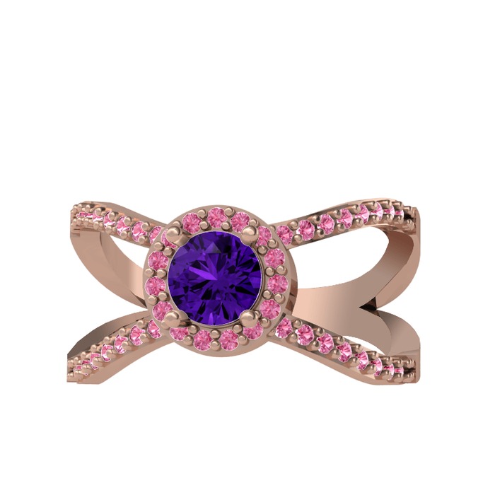 Ametist ve pembe kuvars 8 ayar rose altın yüzük