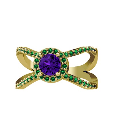 Ametist ve yeşil kuvars 18 ayar altın yüzük