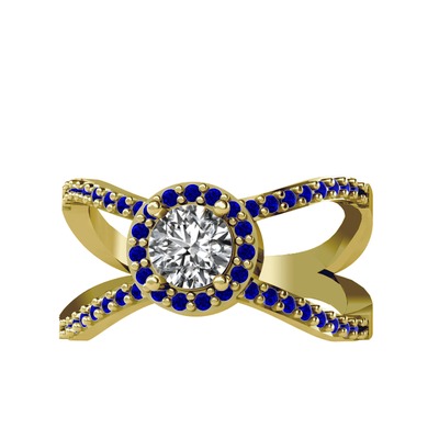 Beyaz zirkon ve lab safir 14 ayar altın yüzük