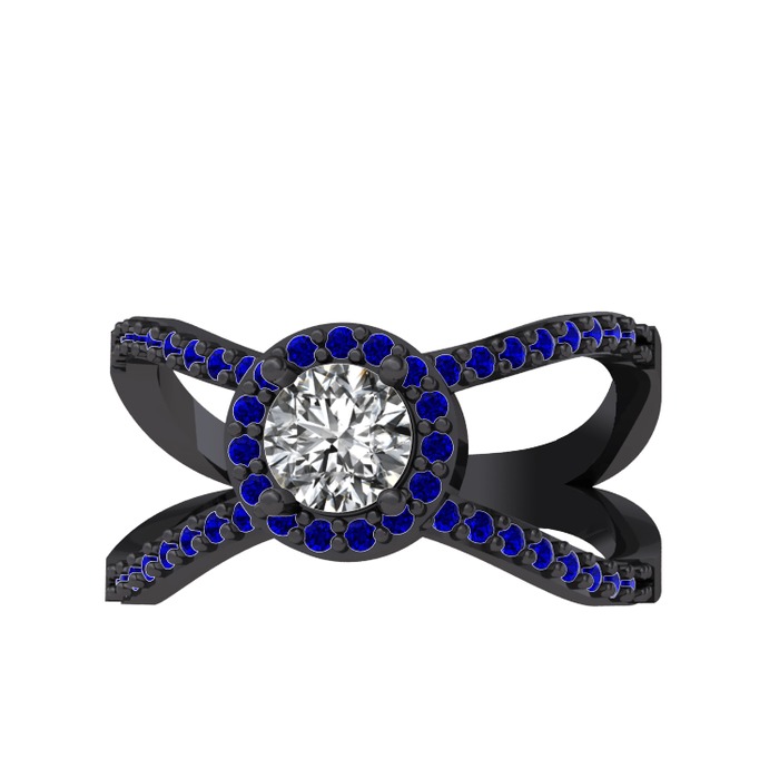 Beyaz zirkon ve lab safir 925 ayar siyah rodyum kaplama gümüş yüzük