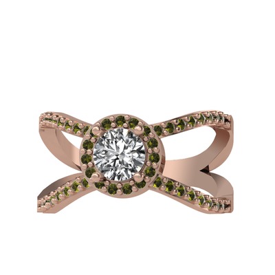 Beyaz zirkon ve peridot 925 ayar rose altın kaplama gümüş yüzük