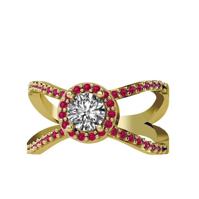 Beyaz zirkon ve rodolit garnet 8 ayar altın yüzük