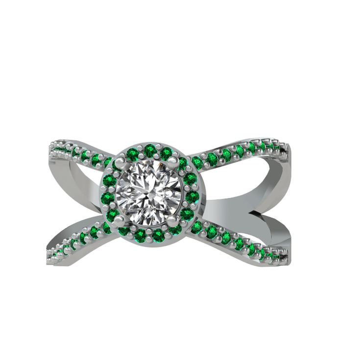 Beyaz zirkon ve yeşil kuvars 18 ayar beyaz altın yüzük