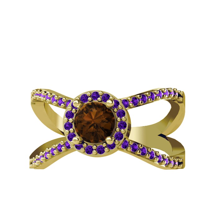 Dumanlı kuvars ve ametist 925 ayar altın kaplama gümüş yüzük