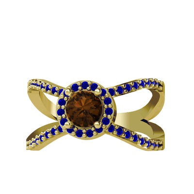 Dumanlı kuvars ve lab safir 8 ayar altın yüzük
