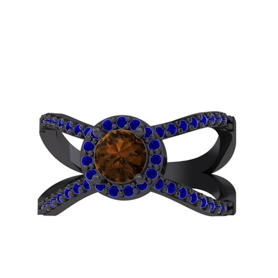 Dumanlı kuvars ve lab safir 925 ayar siyah rodyum kaplama gümüş yüzük