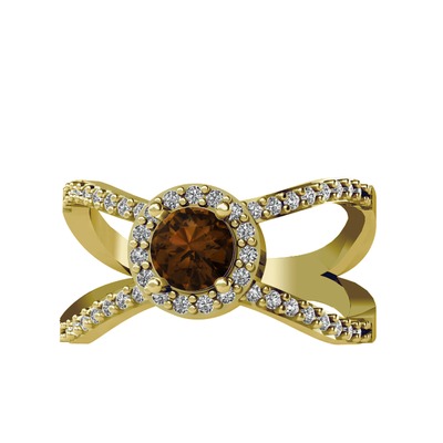 Dumanlı kuvars ve swarovski 18 ayar altın yüzük