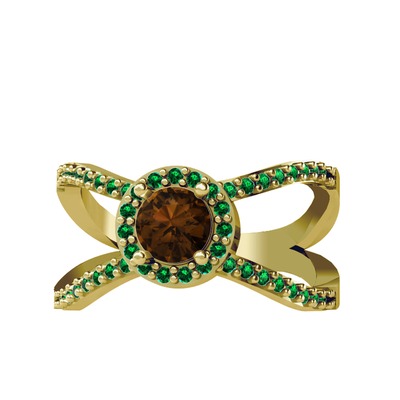 Dumanlı kuvars ve yeşil kuvars 14 ayar altın yüzük