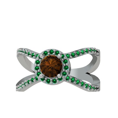 Dumanlı kuvars ve yeşil kuvars 18 ayar beyaz altın yüzük