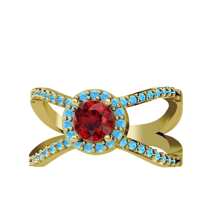 Garnet ve akuamarin 925 ayar altın kaplama gümüş yüzük