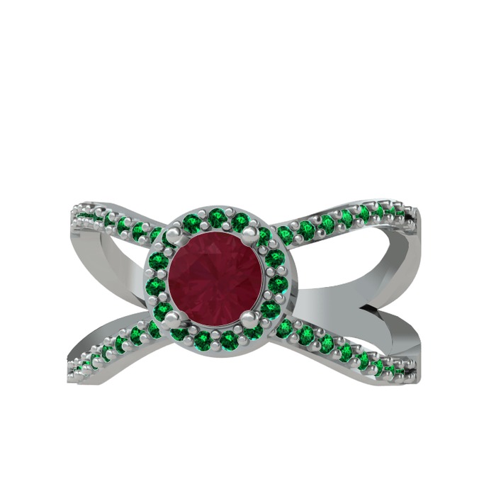 Kök yakut ve yeşil kuvars 18 ayar beyaz altın yüzük