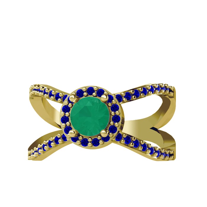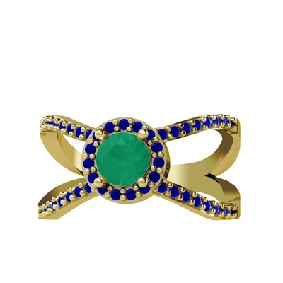 Kök zümrüt ve lab safir 18 ayar altın yüzük