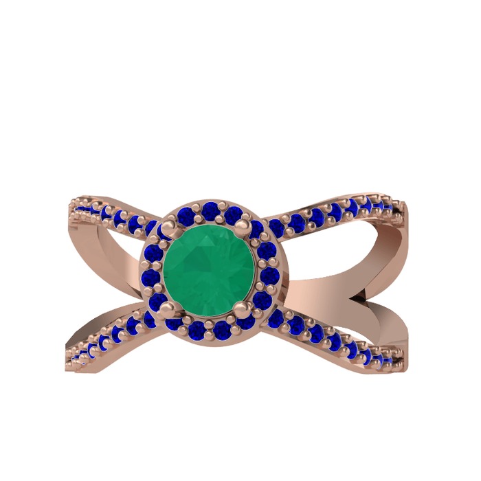 Kök zümrüt ve lab safir 18 ayar rose altın yüzük