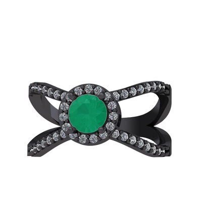 Kök zümrüt ve pırlanta 925 ayar siyah rodyum kaplama gümüş yüzük (0.4136 karat)