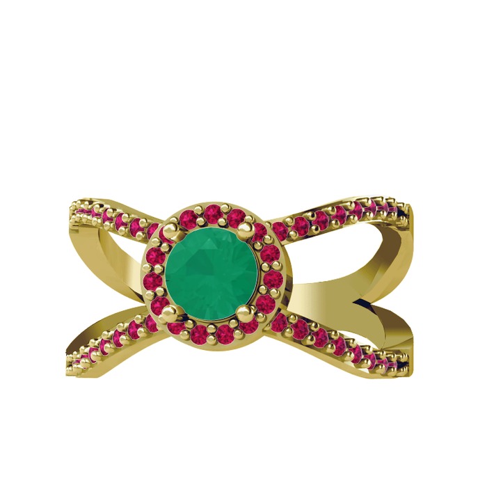 Kök zümrüt ve rodolit garnet 925 ayar altın kaplama gümüş yüzük