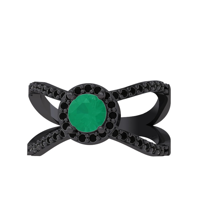 Kök zümrüt ve siyah zirkon 925 ayar siyah rodyum kaplama gümüş yüzük