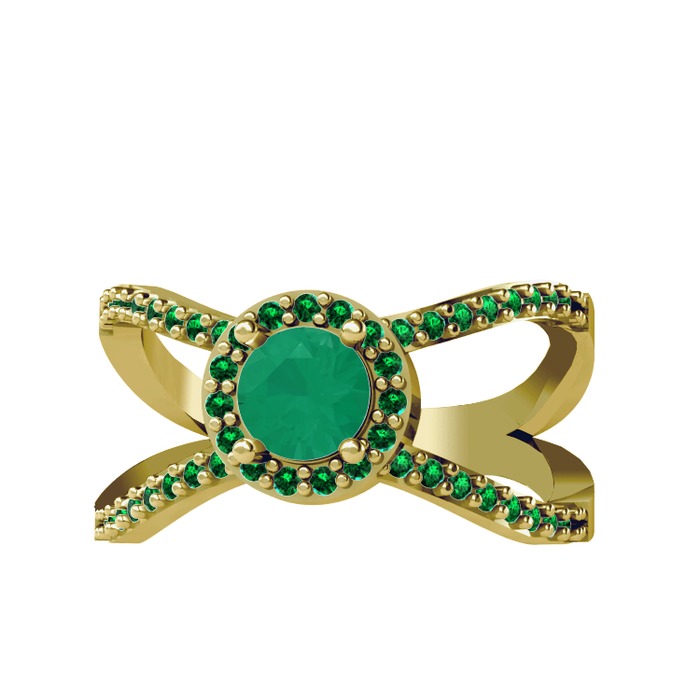 Kök zümrüt ve yeşil kuvars 8 ayar altın yüzük