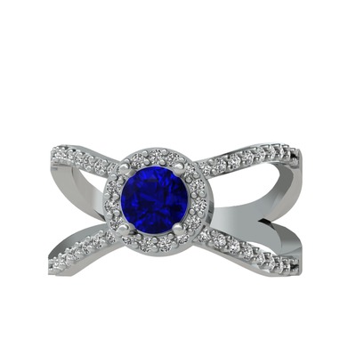 Lab safir ve beyaz zirkon 14 ayar beyaz altın yüzük