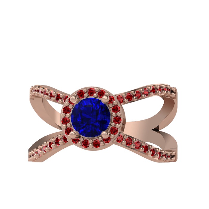 Lab safir ve garnet 925 ayar rose altın kaplama gümüş yüzük