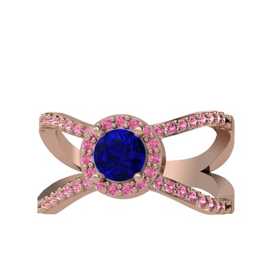 Lab safir ve pembe kuvars 14 ayar rose altın yüzük