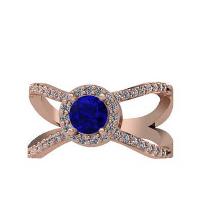 Lab safir ve pırlanta 14 ayar rose altın yüzük (0.4136 karat)
