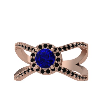 Lab safir ve siyah zirkon 925 ayar rose altın kaplama gümüş yüzük