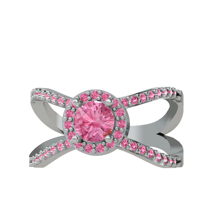 Pembe kuvars 8 ayar beyaz altın yüzük