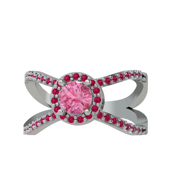 Pembe kuvars ve rodolit garnet 18 ayar beyaz altın yüzük