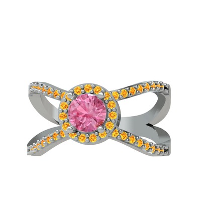 Pembe kuvars ve sitrin 14 ayar beyaz altın yüzük