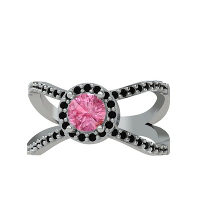 Pembe kuvars ve siyah zirkon 14 ayar beyaz altın yüzük
